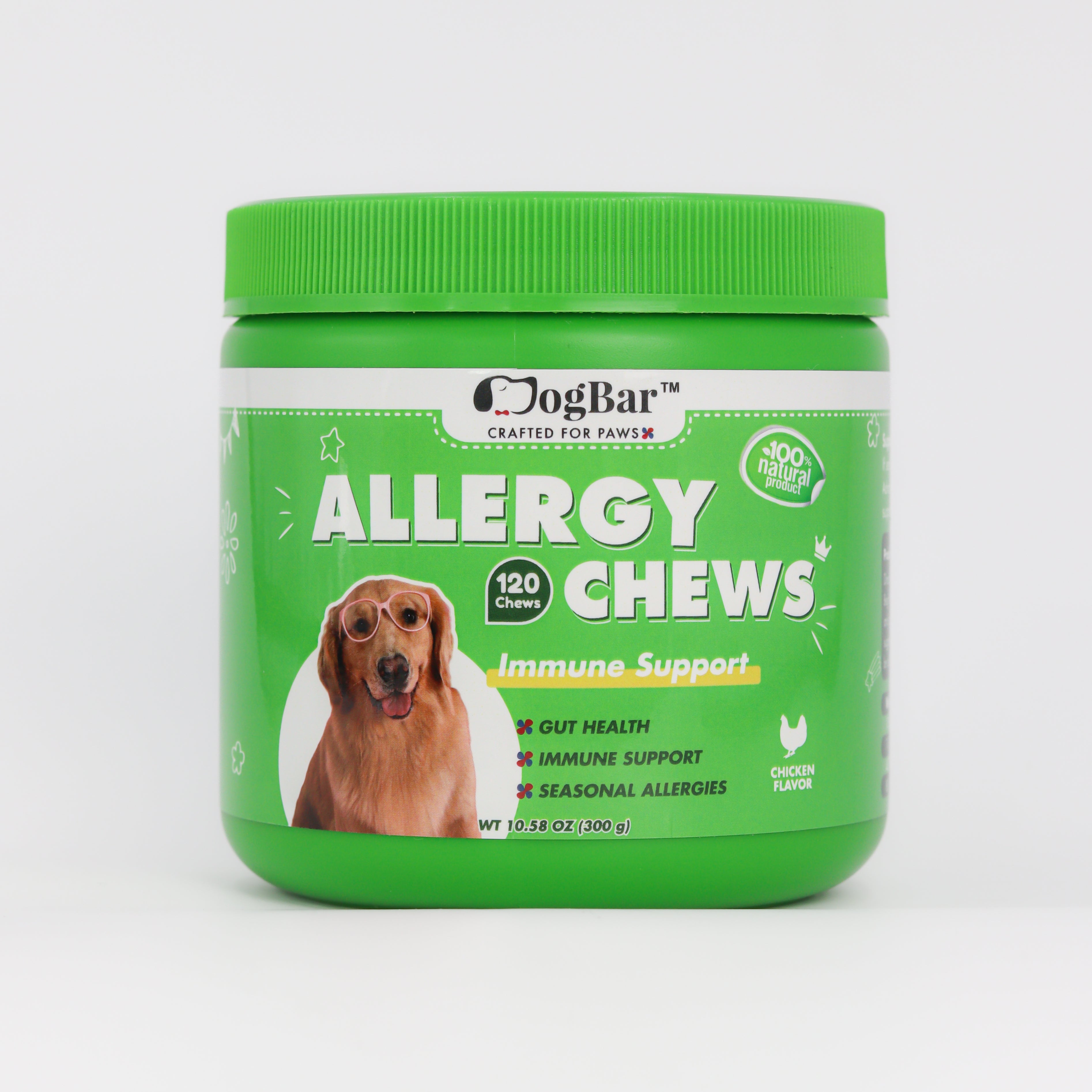 Dogbar’s Allergy Chews provide comprehensive relief from itching, scratching, and skin irritation caused by common allergens such as pollen, grass, and certain foods. They are enriched with natural ingredients known for their anti-inflammatory properties, helping to calm allergic reactions and promote skin and coat health from within.