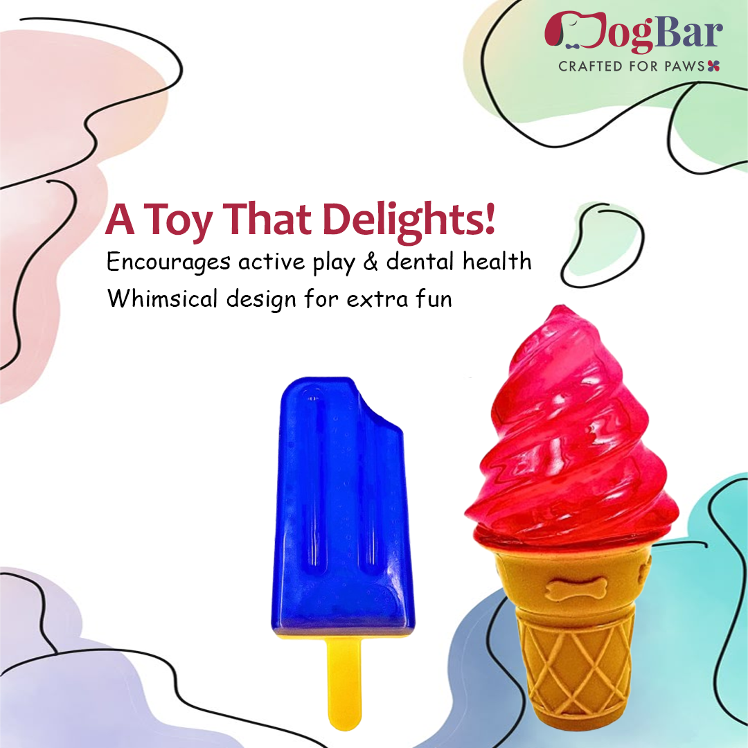 Give your furry friend a toy that provides both entertainment and dental benefits, and make every play session a delightful experience with the DogBar's Ice Cream Bar & Cone Toy.