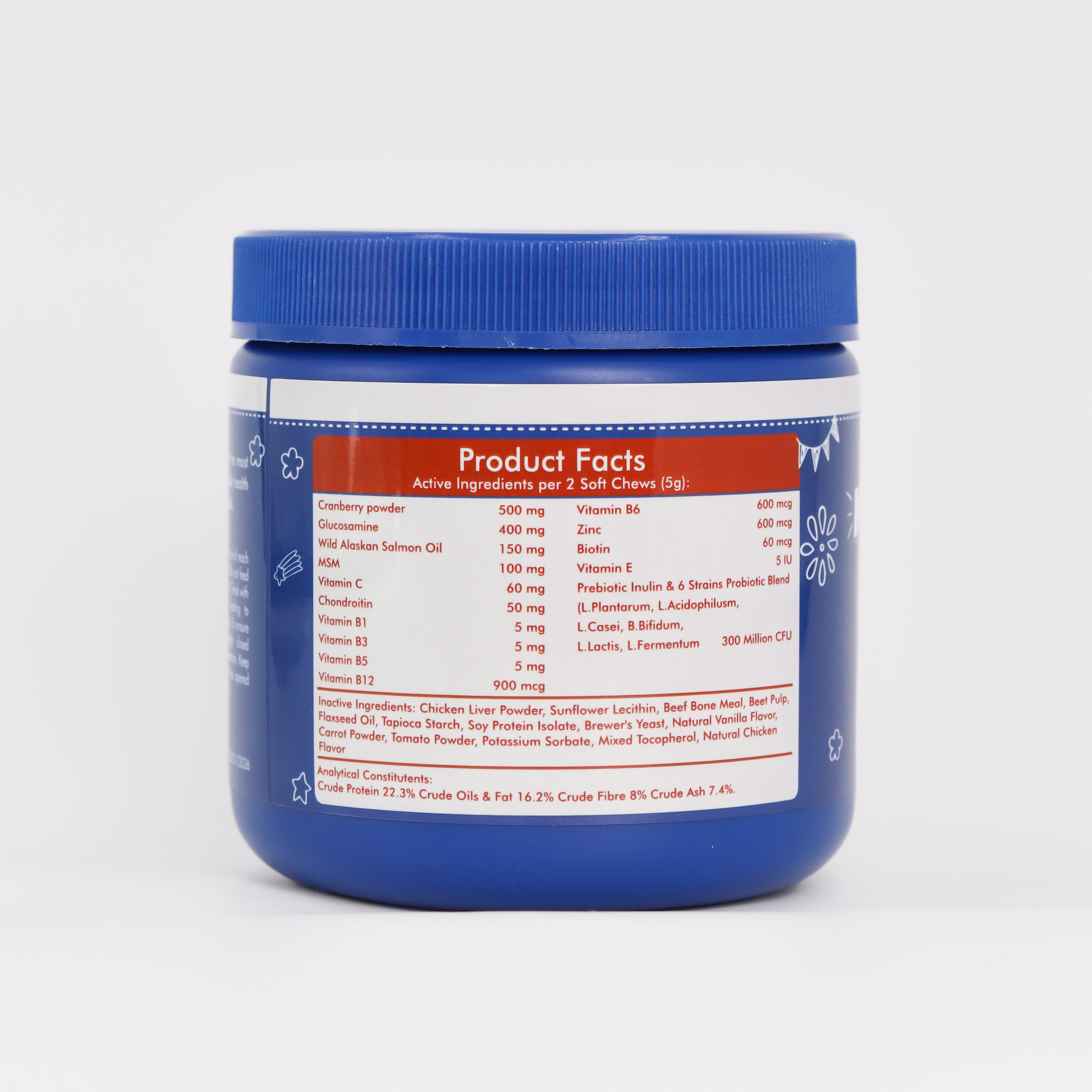 These chews are enriched with a comprehensive blend of vitamins, minerals, and antioxidants crucial for pets’ immune system support, joint health, and optimal organ function. Key nutrients like Vitamin A for vision, Vitamin D for bone strength, and Vitamin E for skin and coat health ensure your pet receives balanced nutrition every day.