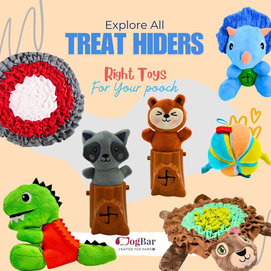 Get entire treat hider collection from DogBar- Spooky Squirrel Rooky Raccoon Treat Hider Balls Snuffle Mats Premium pet toys from DogBar.