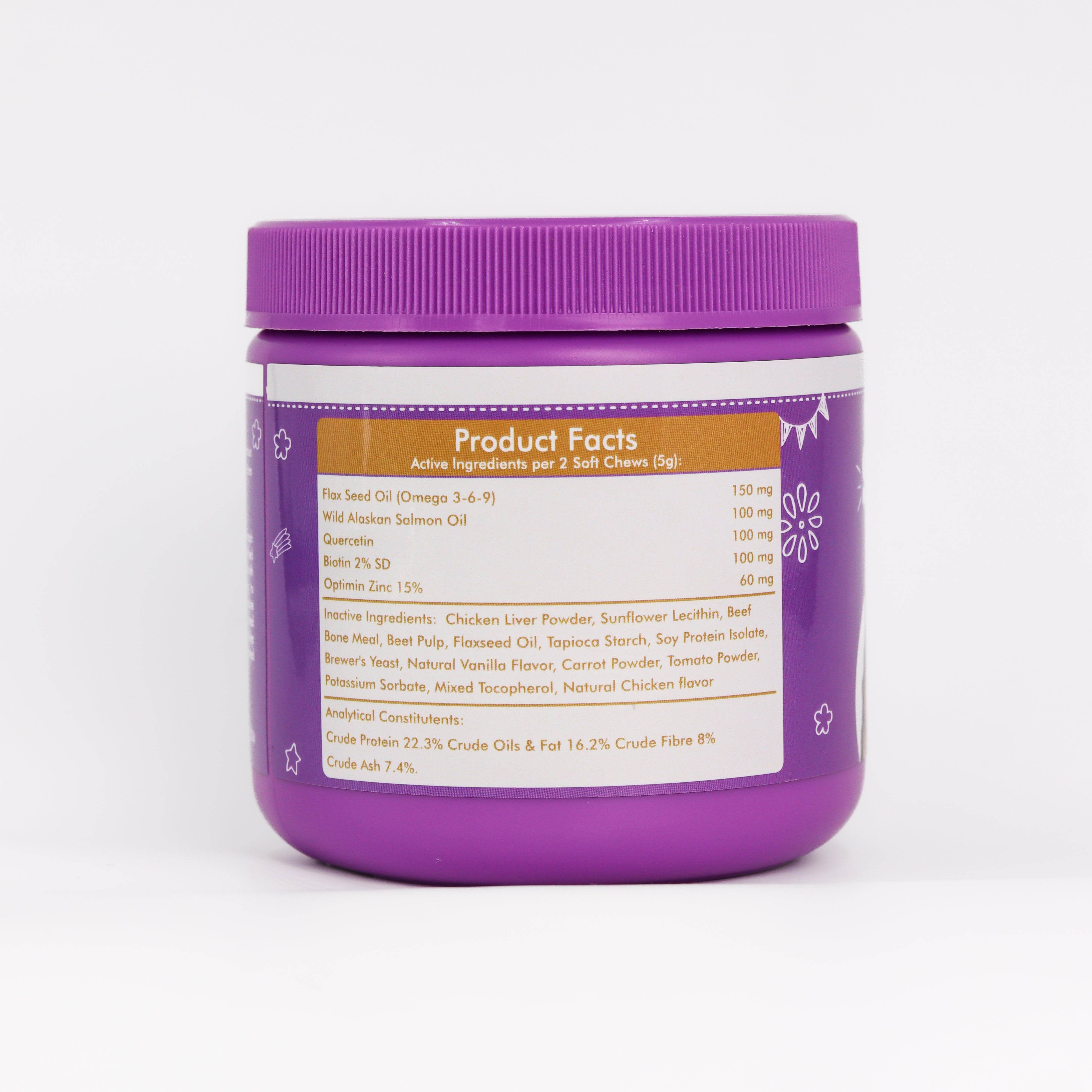 These 100% natural, preservative-free chews are crafted with care to support your pet's overall skin health.