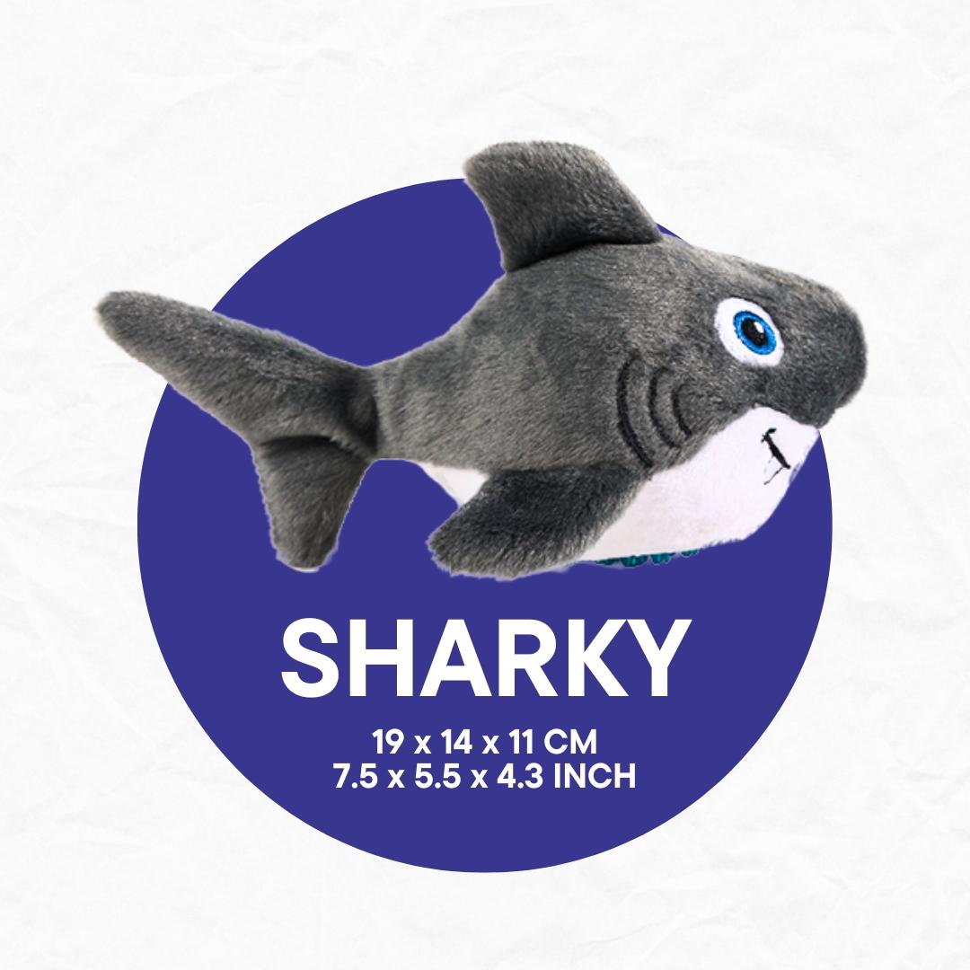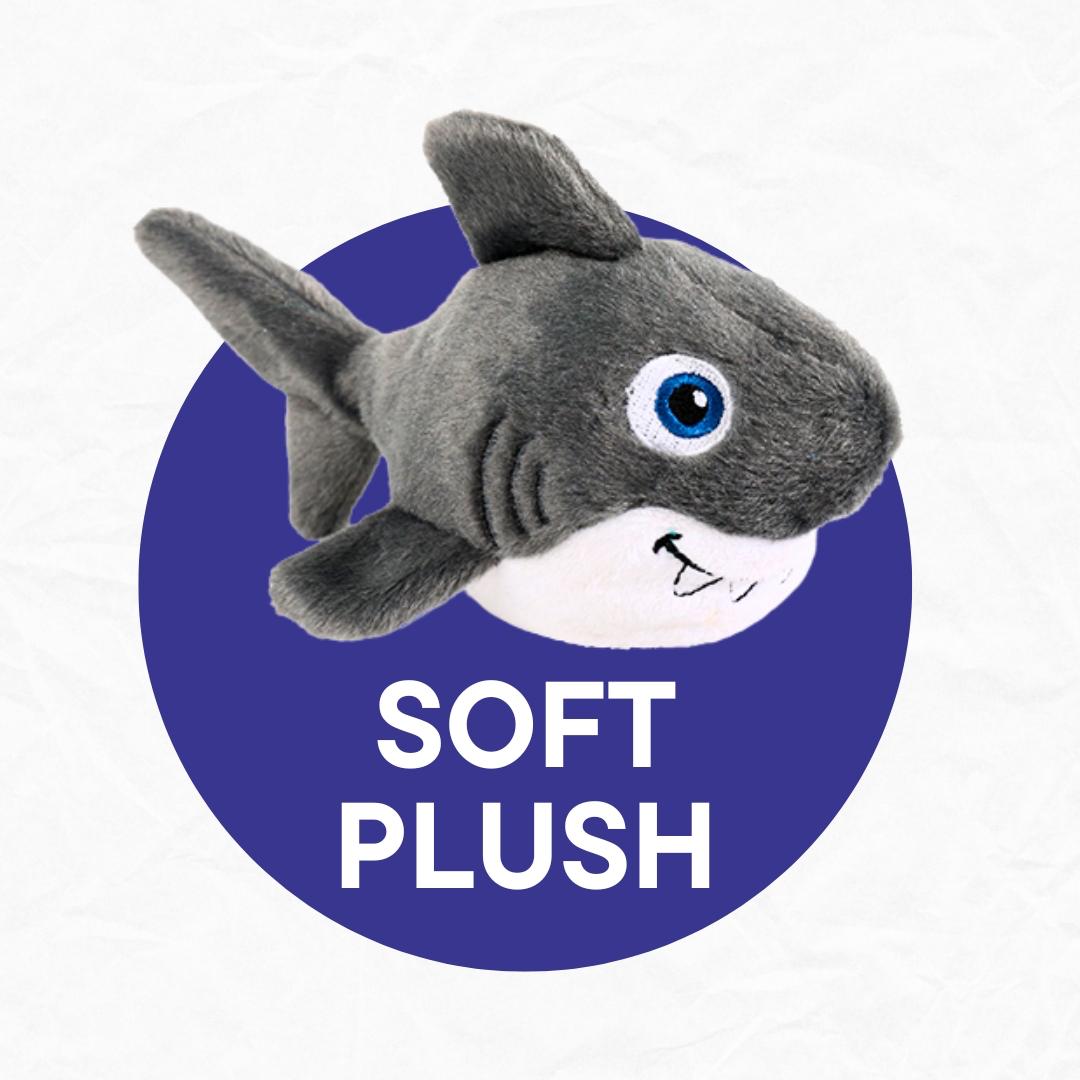 The premium plush Sharky toy from the Fish Factory Collection by DogBar is designed to bring excitement and fun to your furry friend's playtime. Crafted from super-soft fabric, this standard-sized plush toy is perfect for indoor play and mental stimulation.