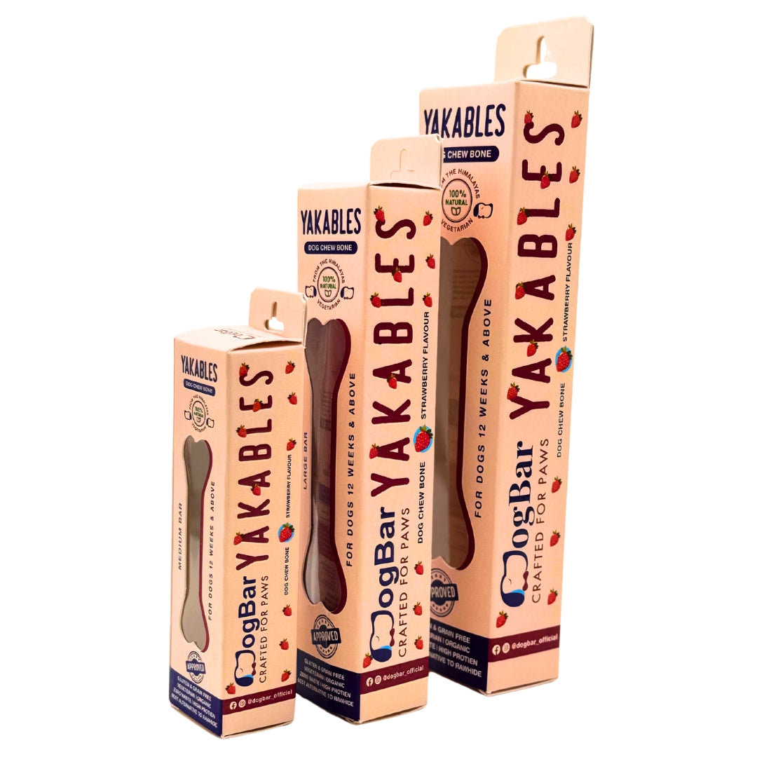 Introduce your dog to the delicious and nutritious world of Yakables from DogBar. Made from 100% natural yak and cow milk, these vegetarian dog chews are free from preservatives and chemicals and come in various flavors. With high levels of calcium and protein, these long-lasting chews promote dental health and provide relief from teething discomfort. Choose from three sizes for the perfect fit, and give your furry friend a healthier alternative to traditional rawhide bones.
